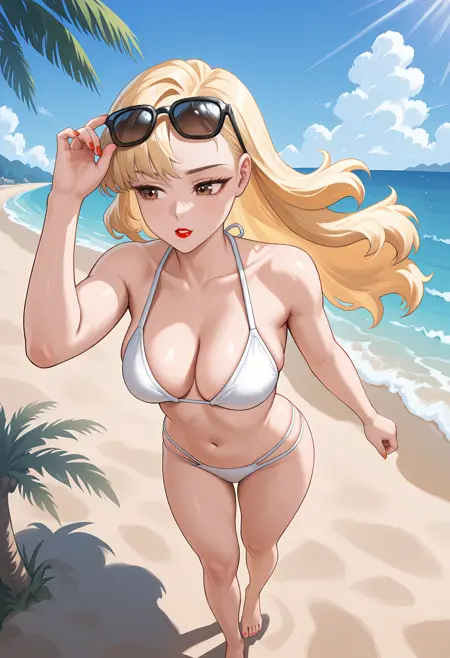 WildGunsAnnie,棕色眼睛,金色头发,长发,不对称刘海,红色口红