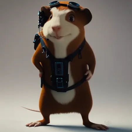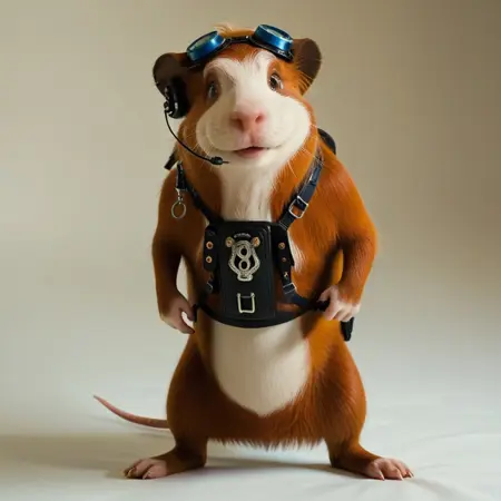 semi-anthro, male furry, rodent, guinea pig, brown and white fur, brown eyes, pink nose, animal ears,