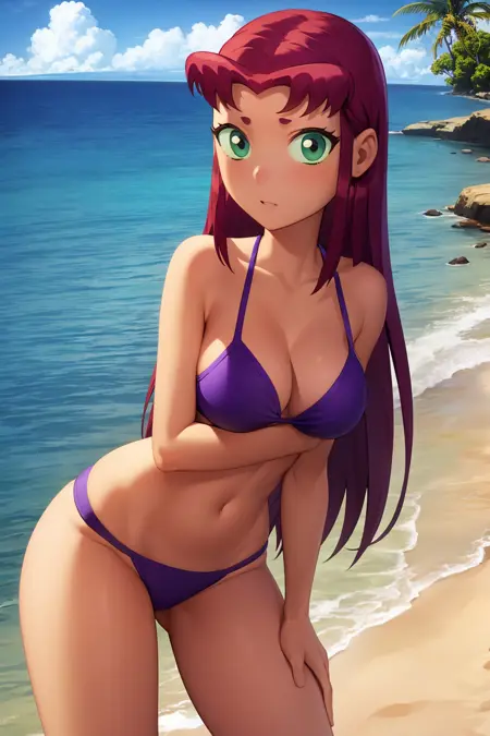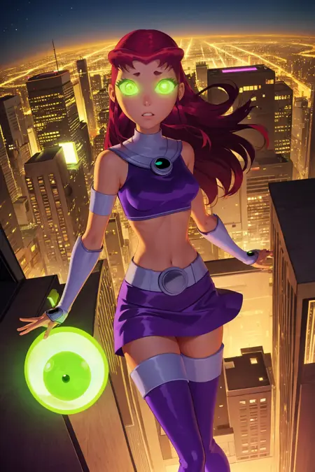 基础提示:1girl, red hair, long hair, green eyes, green sclera, orange skin