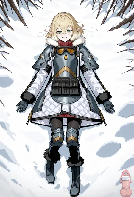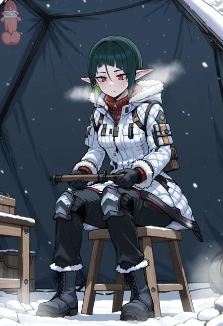 federation_winter_uniform, Grenadier_winter_uniform, 장갑, 부츠, 무릎 패드, 군복, 개 목표, 갑옷, 목에 걸린 고글, 목 주변의 고글, 털 장식, 흰 코트, 가슴판,