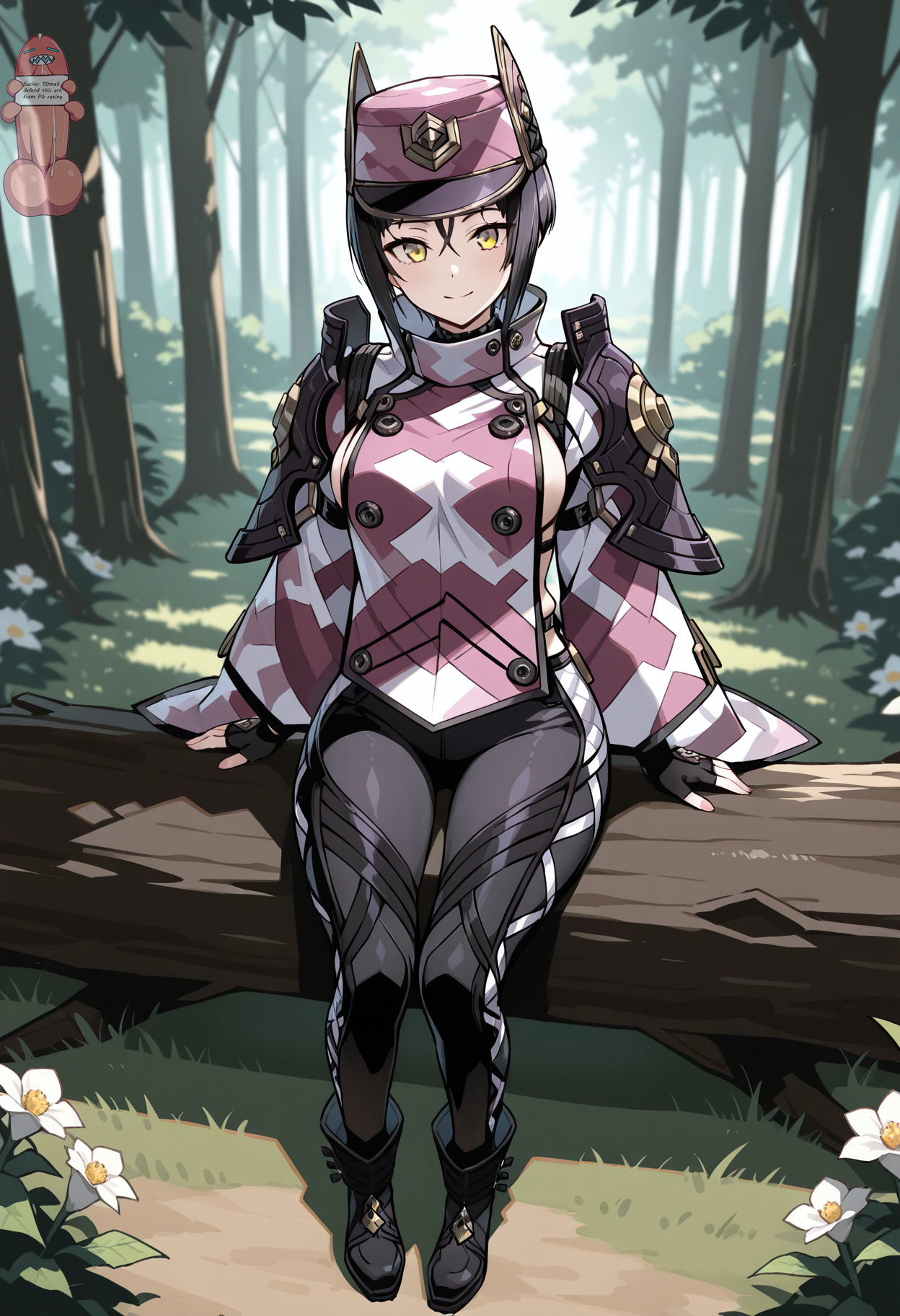 kai_winter_outfit, 손가락 없는 장갑, 부츠, 무릎 패드, 군복, federation_winter_uniform, 저격 소총, 저격 소총 들기, 카이 모자, 카모플라주, 검은 신발, 조이는 바지,