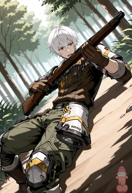 federation_summer_uniform, Scout_summer_uniform, 장갑, 부츠, 무릎 패드, 군복, 소총 들기, 소총, 갑옷, 개 목표,