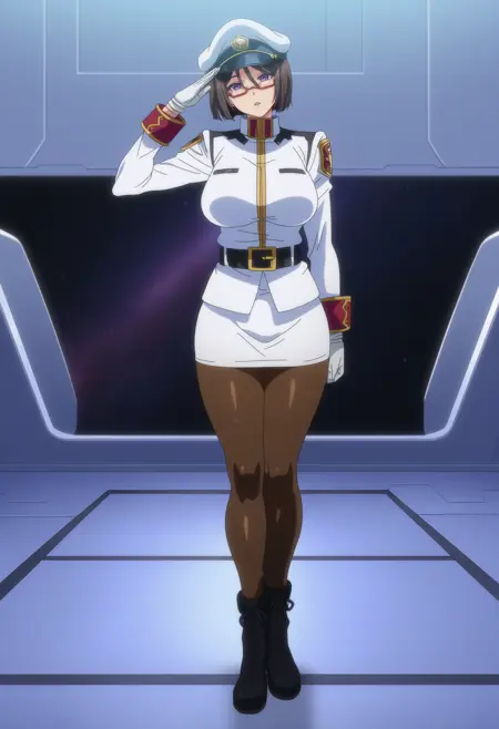 naval uniform, white uniform, brown pantyhose, black belt, white gloves, peaked cap, pencil skirt, white skirt, ankle boots, lace-up boots