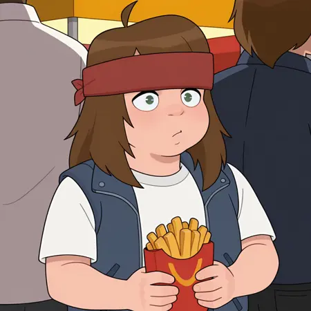 np: bob_cut, kawaii, makeup, double chin, short hair, (aged_up:0.3), ponytail,