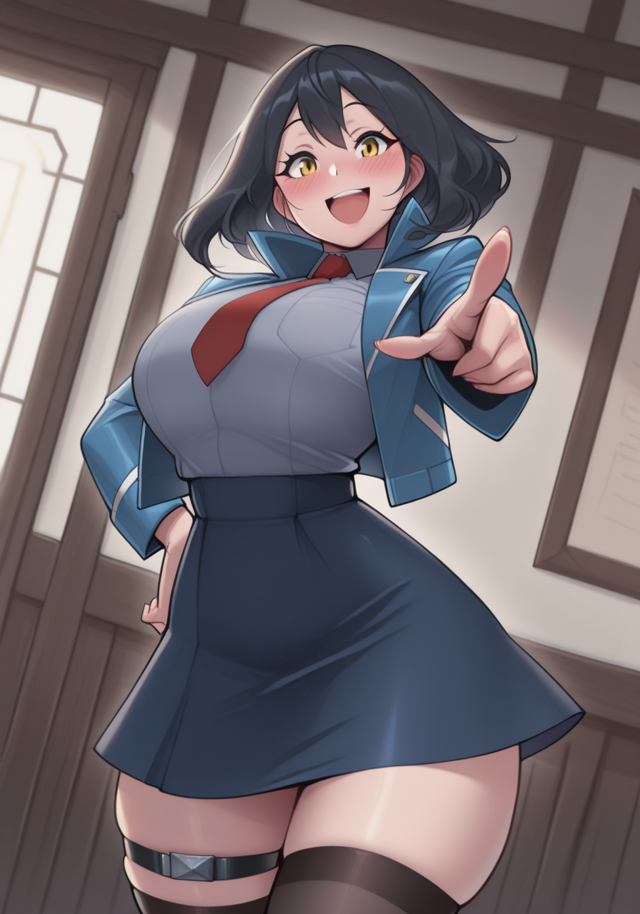 Prompt Example: 1girl, solo, virgin ribbed sweater, destroyer sweater, dark violet green sweater, navel, thighhighs, smile, looking at viewer, library, thick thighs, wide hips, large breasts, curvy, BREAK character_concept, cowboy_shot, (dutch_angle:1.25), masterpiece, best quality, amazing quality, very aesthetic, absurdres, modern, recent, newest, lora:Lachapiz\_IL\_Style\_epoch\_7:1 L4ch4piz