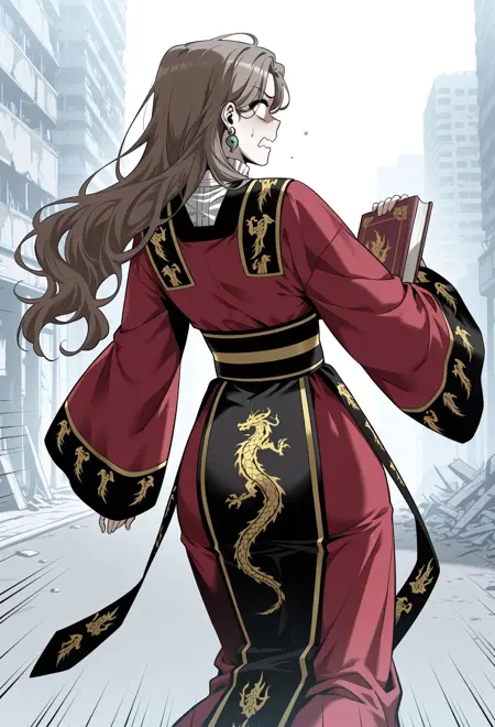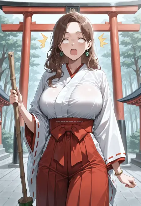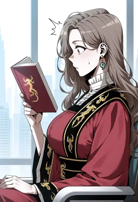 1girl, solo, brown hair, long hair, wavy hair, brown eyes, large breasts,