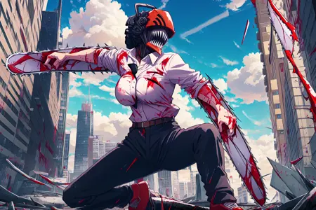The trigger word for this model is contractdenjiv1. I chose this weird word mainly because it was completely unique and I could focus training on it specifically. Additional prompts you can use are male focus, 1boy, chainsaw.