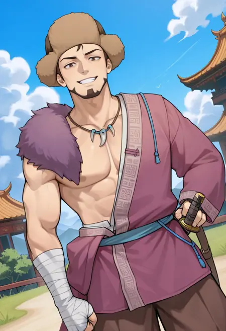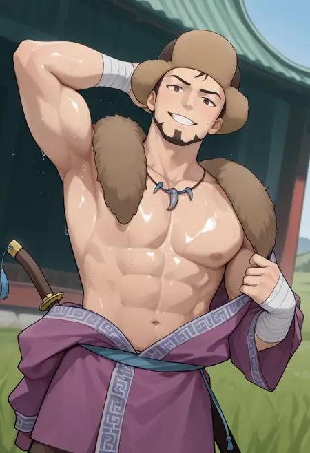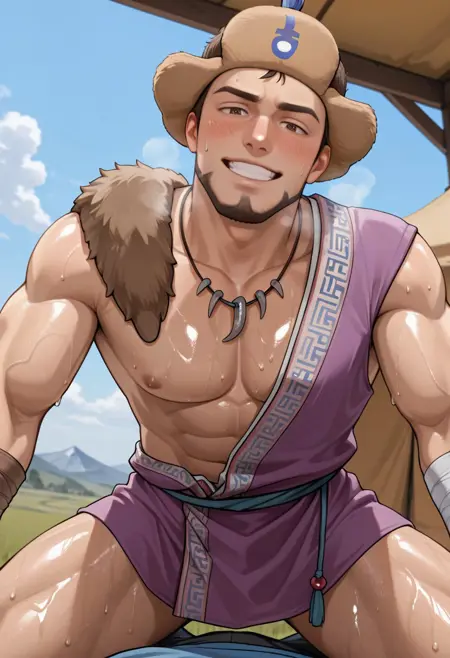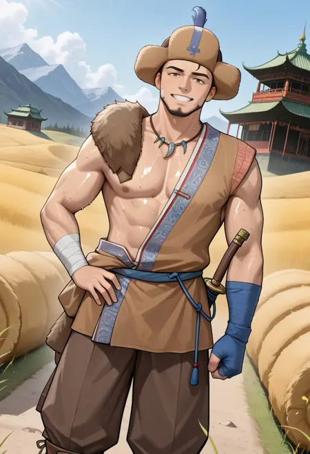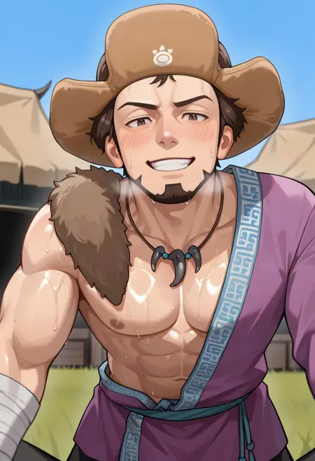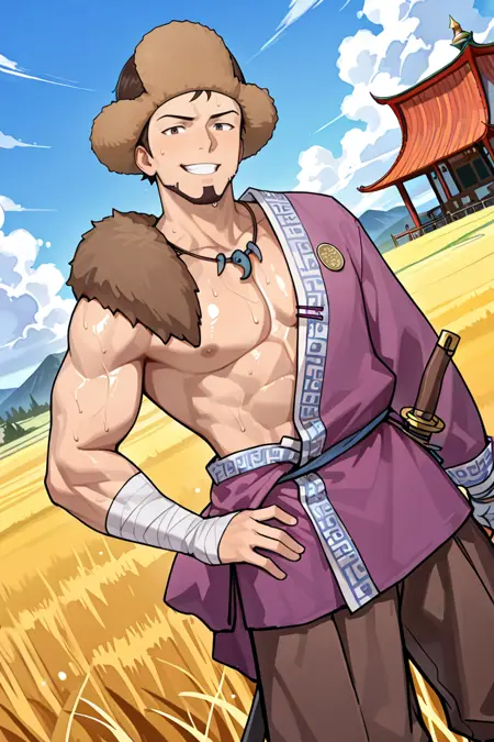 characterbaramuscularhandsomeasianmuscular malemasculinebrown eyeshatgame charactermalemanshort hairasian manbrown haircharactersrobeteachermature maleethnictraditional clothinghunkmongoliamongoliannomadmale characterethnicitymuscular manstubblegoateehadanugi dousaathletic bodycentral asiamale clothingreversed frontmongolian manbaatarmongolsdeelмонгол
