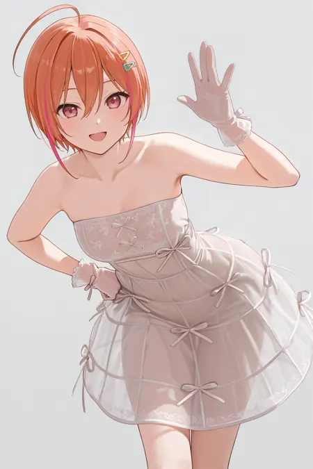 himuromizuki, short hair, orange hair, pink hair, streaked hair, multicolored hair, hair between eyes, ahoge, pink eyes, hairclip