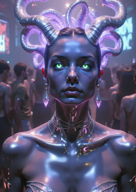 🔥 使用建议: 为获得最佳效果,请将此 LoRA 与 Flux.1 [dev] 搭配使用,并配合描述超现实场景、未来主义服饰或抽象元素的提示词。尝试调整光影与纹理,以突出液态金属效果与粉彩色调。