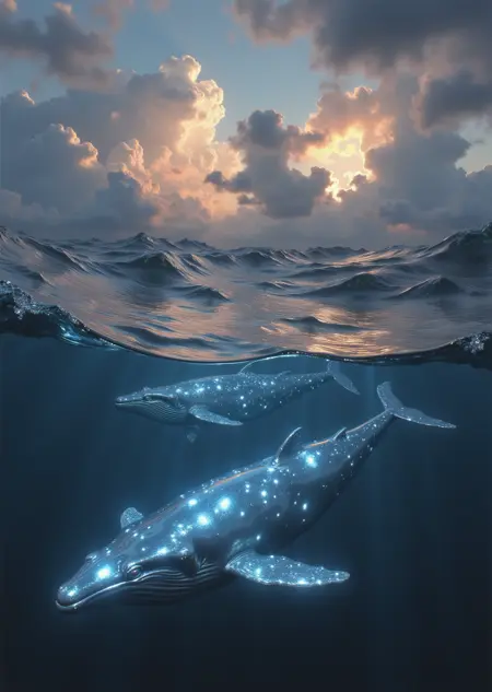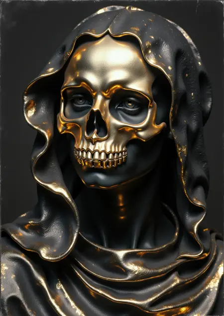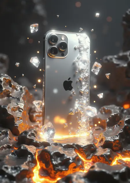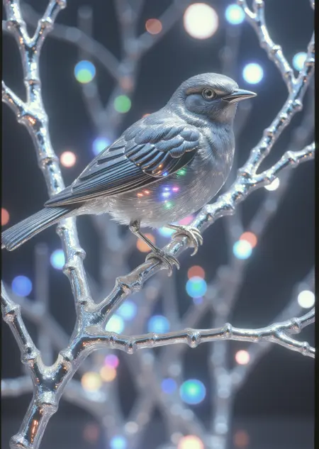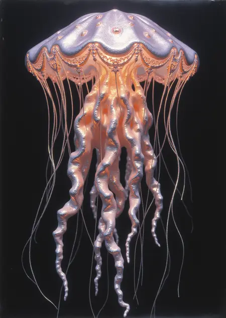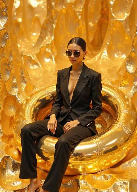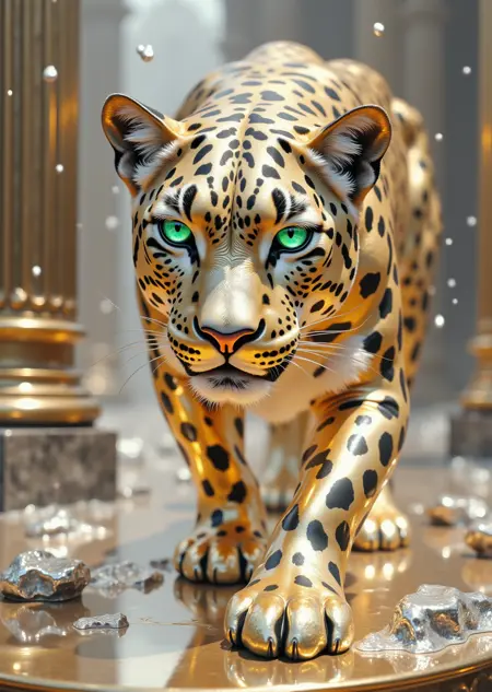 🔷 超现实风格,搭配液态金属效果,营造出光滑、反光的表面。