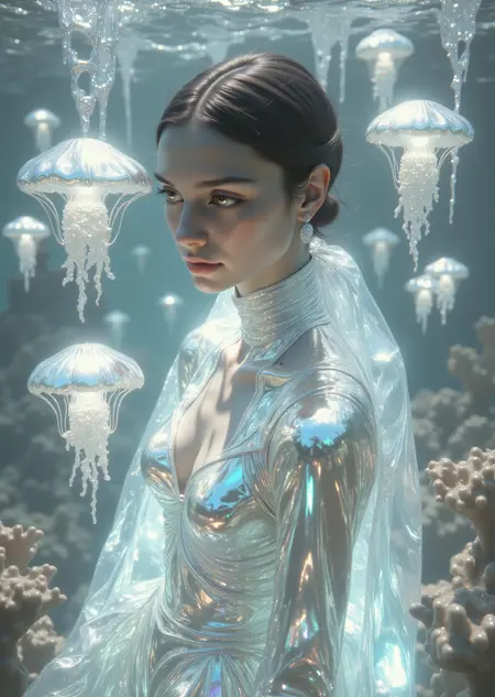 😉 Usage Examples: This LoRA excels in creating surreal and fantasy-inspired imagery. It can transform ordinary scenes into magical ones: from figures in flowing metallic outfits in moonlit desert landscapes to abstract compositions with fish floating in the air, as if made of liquid.