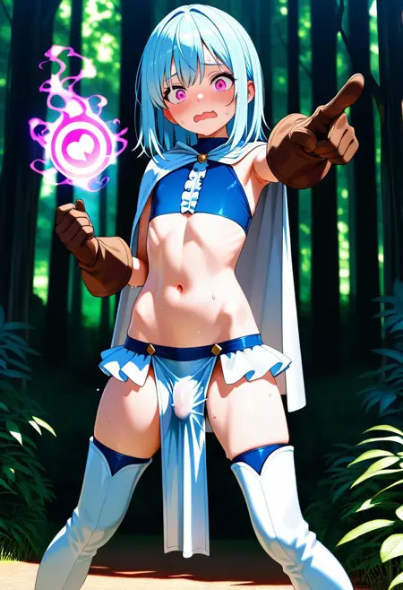 | Trained Words | femboy, ((light blue hair)), pink eyes, shy face, medium hair, straight hair, white cape, blue crop top, loose top, white loin cloth, small penis bulge, white boots, thigh boots, loose crop top, flat chest, penis under clothes, petite, short, panties, white pelvic curtain, short cape, ruffle crop top, brown gloves, oversized gloves, long pelvic curtain, side slits, going commando, navel , white skirt, ((pronounced hip bones)), lowleg skirt, cleavageCopied! |