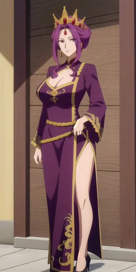 • Purple_royal_dress_Black_skirt_High_collar_Choker_Crown: 기본 드레스