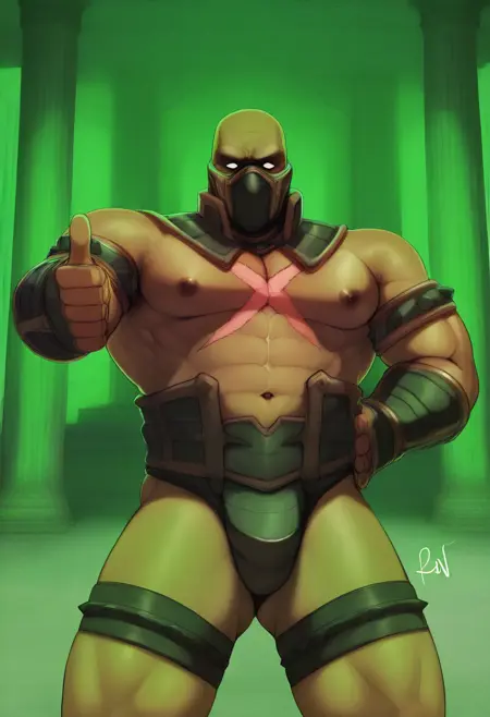 sc3 outfit, red skin, glowing yellow eyes, glowing yellow scar, armor