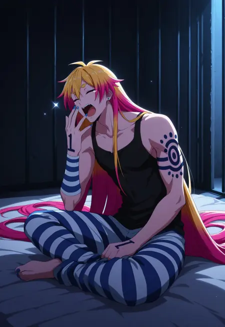 Inmate #1311 also known as Uno is a major character from the anime Nanbaka. He's an inmate of Cell 13 in Nanba Prison, known for his flirtatious personality and exceptional gambling skills. Despite his carefree and playful demeanor, Uno is clever, observant, and capable in fights. He values friendship and has a strong bond with his cellmates—Jyugo, Rock, and Nico. Uno was imprisoned for frequent gambling and cheating, but he treats his time in Nanba more like a game, bringing humor and energy to the group dynamic.