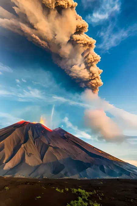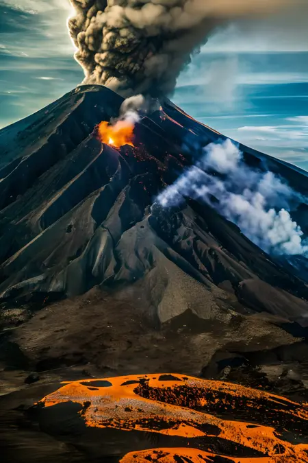 Real hires photos of volcanos, eruptions, lava, flames and fire. High detailed realistic photos as result.