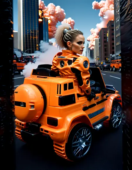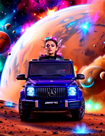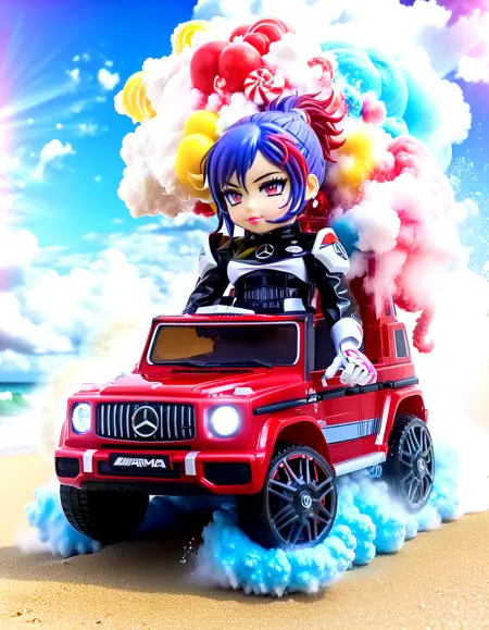 Pony_XLバージョン。車の中に人物を配置するのは必ずしも簡単ではありません。「オフロードに座っている」のようなプロンプトが役立ちます。