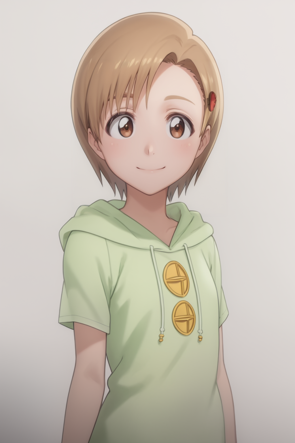 Basic prompts : 1girl, yuzu, brown hair, brown eyes, short hair, hairclip