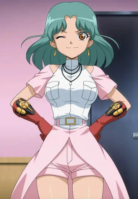 태그 사용: Bakugan, 귀걸이, 주얼, 녹색 머리카락, 갈색 눈, 파란 머리카락, 장갑, 단발, 흰색 셔츠, 분홍색 반바지