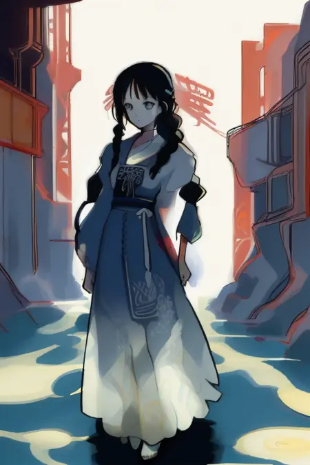 スタイル: アニメ風ですが、汎用的ではありません — 真野マコトと井筒俊彦の控えめな作品を組み合わせたような雰囲気。