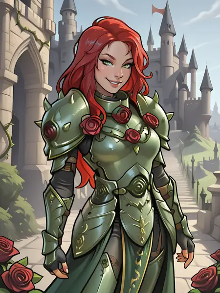 long hair, red hair, green eyes