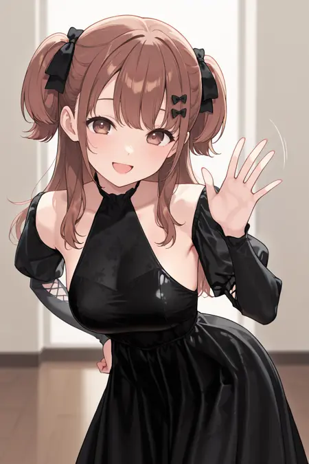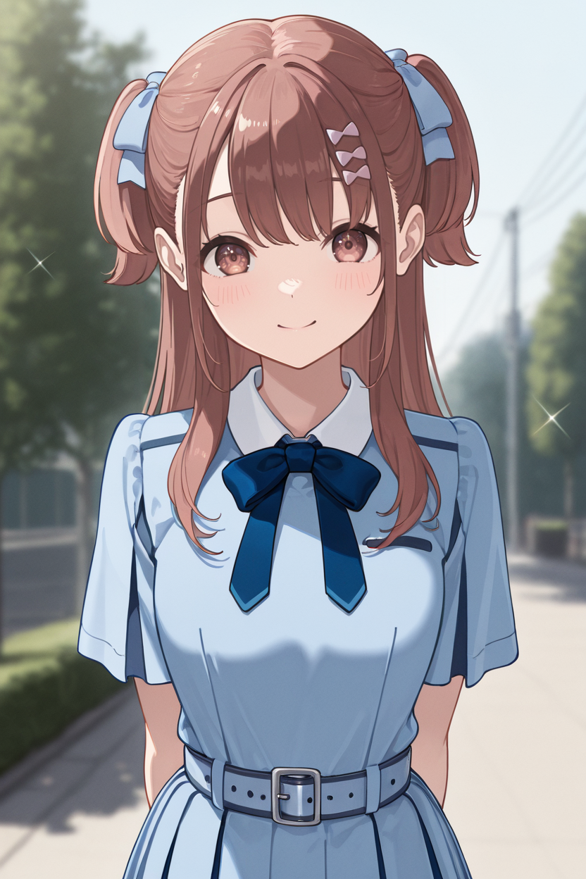 serahonoka, brown hair, long hair, two side up, hair bow, hair ribbon, brown eyes