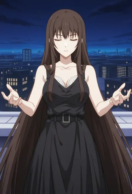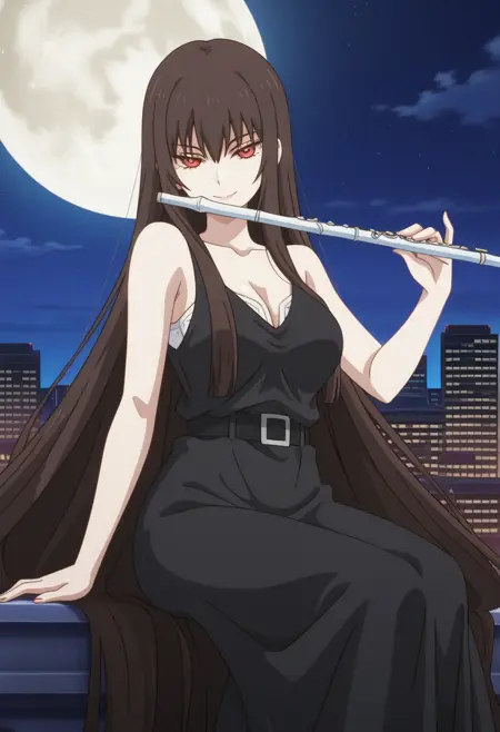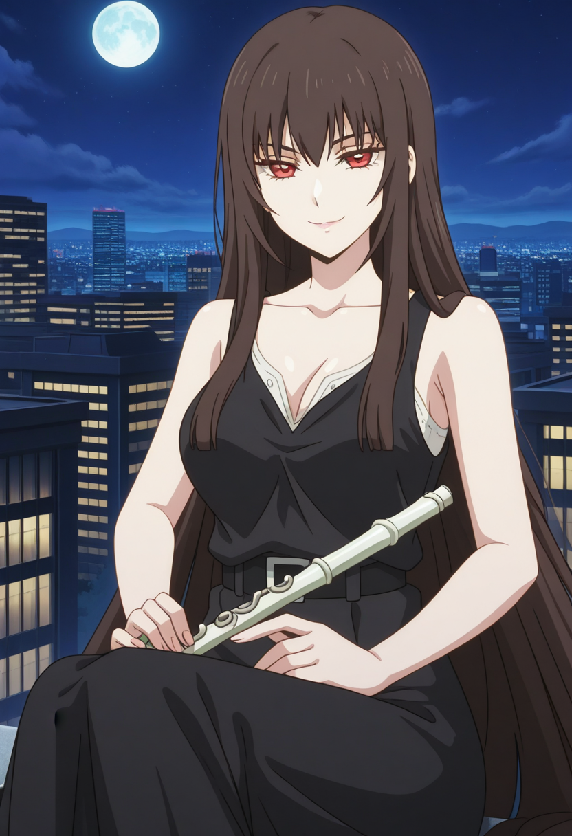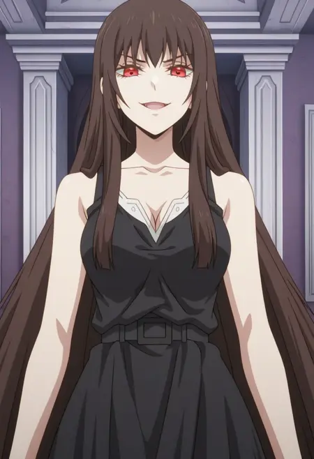 SeraFanoss, red eyes, hair between eyes, brown hair, very long hair