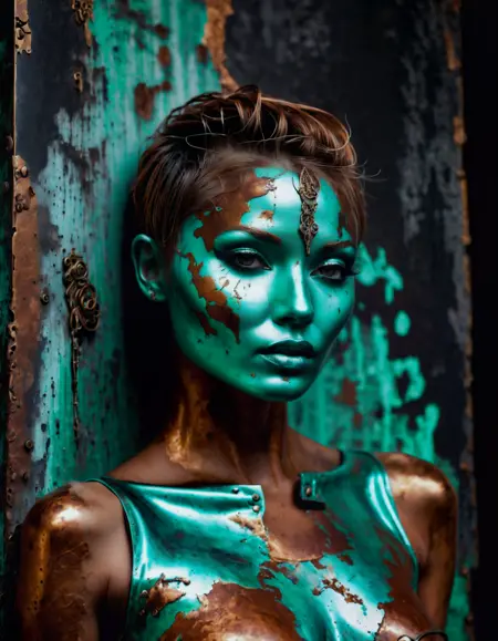 이 모델은 LoRa 가중치가 약 1일 때 잘 작동합니다. 트리거 단어는 '파티나 금속 피부'와 'PMS 스타일'입니다. 이 모델은 피부와 옷을 파티나 층이 있는 오래된 녹슨 금속으로 변환하도록 학습되었습니다.