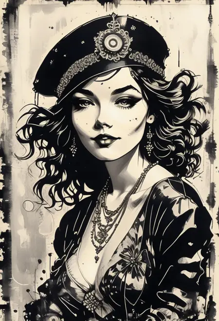 This model was trained on my generator images and is good for ink-style portraits with a monochrome vintage look. Don’t expect perfect eyes or hands from this Lora.