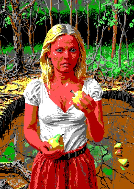 좋은 16색 EGA 아트를 찾는 데는 오래된 DOS 게임에서 아트를 광범위하게 탐색하고 추출하는 데 많은 시간이 걸렸습니다. 픽셀 아트가 너무 다양한 미세한 크기로 버킷에 스케일링되면서, 디더링된 색상이 일관되게 위치하거나 구별된 것으로 인식되지 않고, 대신 우리가 디더링을 '인식'하는 방식으로 혼합된다고 생각합니다. 그러나 그럼에도 불구하고, EGA 스타일의 대략적인 근사치는 얻을 수 있습니다. 즉, 1980년대의 흐릿한 기억처럼 대체로 올바른 큰 흐름을 포착합니다. 어쩌면 그것이 적절한지도 모릅니다. 당시의 디지털 아티스트들은 진정한 마법사였습니다. 이 끔찍한 색상들을 전기 공학자가 선택할 법한 색상들처럼 보이지 않게 만들었죠. 오늘날의 레트로 아티스트들도 이 끔찍한 색상 체계를 자발적으로 선택하여 작업한다는 점에서 마찬가지입니다.