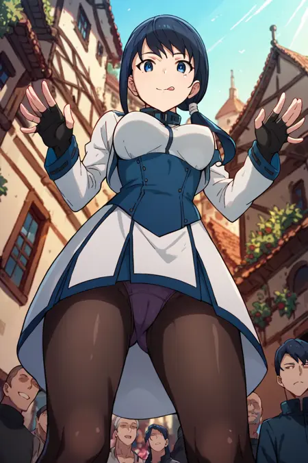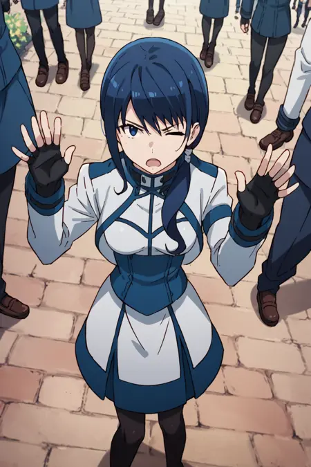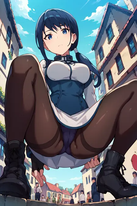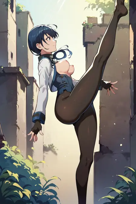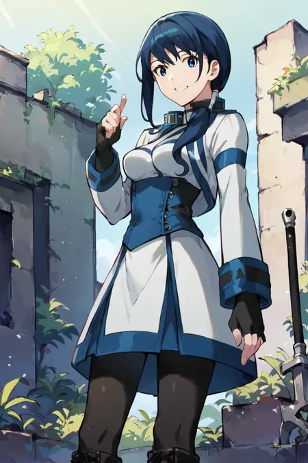 태그: fingerless_gloves, boots, blue_hair, blue_eyes, _black_pantyhose