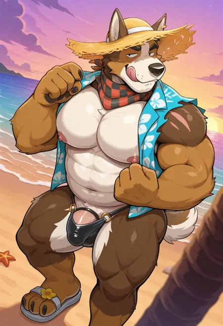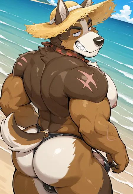 강화 프롬프트: :furry, 팔에 흉터, 근육질, bara, 큰 가슴근, 남성적, 성숙, 통통한