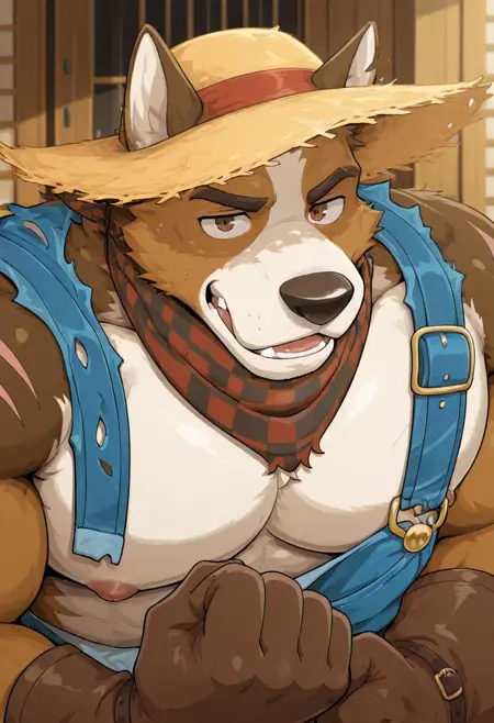 强化提示::furry, 手臂疤痕, 肌肉发达, bara, 宽厚胸肌, 男子气概, 成熟, 丰满