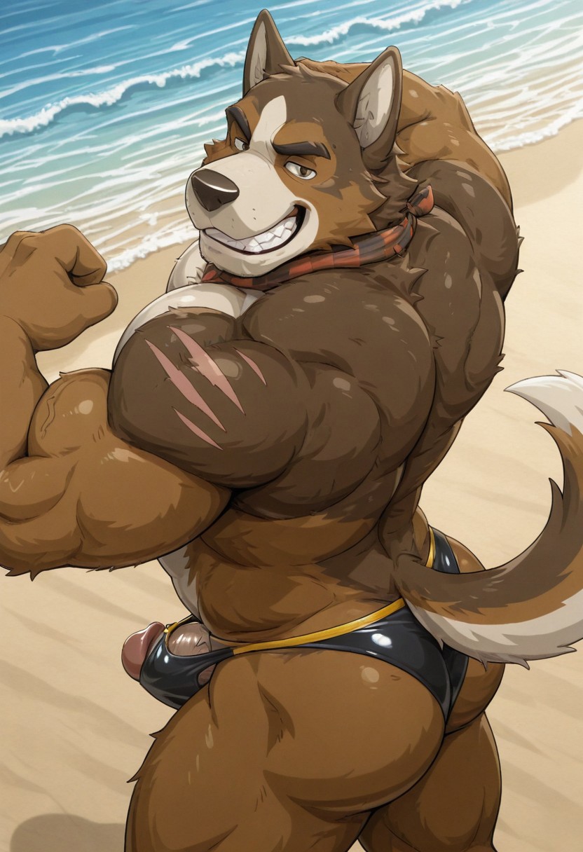 • 强化提示::furry, 手臂疤痕, 肌肉发达, bara, 宽厚胸肌, 男子气概, 成熟, 丰满