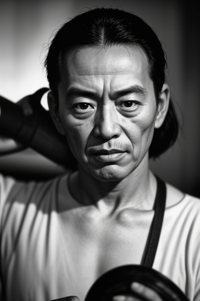 製品/オブジェクト: "Ilford HP5、高コントラスト、粗い質感" — 細部を強調(例:刀や茶道具)