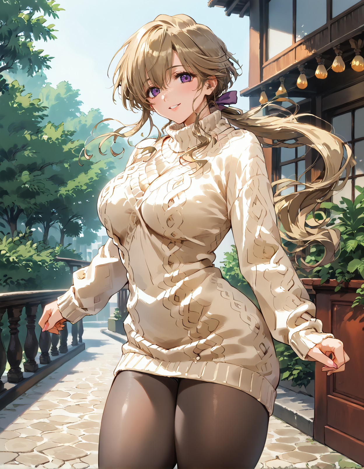 她的发色可以是金色、棕色或浅棕色,取决于你的模型和偏好(针对IL-NAI)