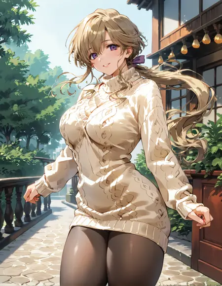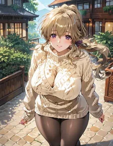 触发词包括:kamiazuma yumiko,棕色头发,金色头发,紫色眼睛,注视观众,浅笑,长马尾,飘动的头发,