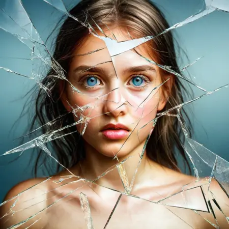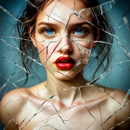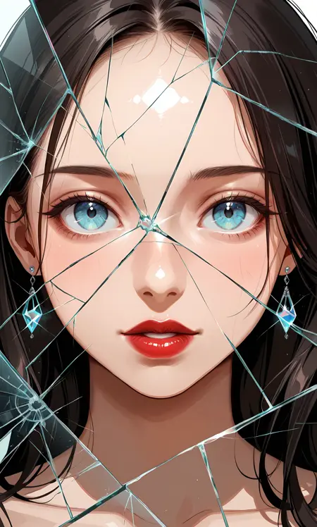 This LoRA overlays elegant, realistic glass fractures that feel like visual metaphors — heartbreak, transformation, duality, or inner strength breaking through.