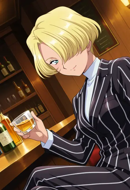 suit, turtleneck, white turtle neck, stripped suit, black suit, pinstripe suit,