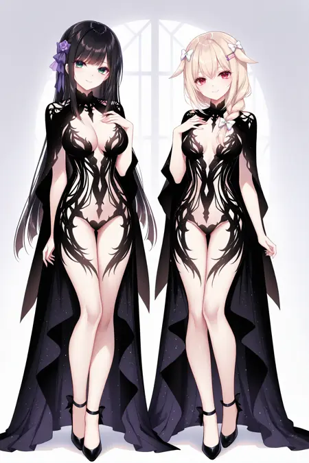 chronopattern 드레스, 케이프, 노출되는 옷,