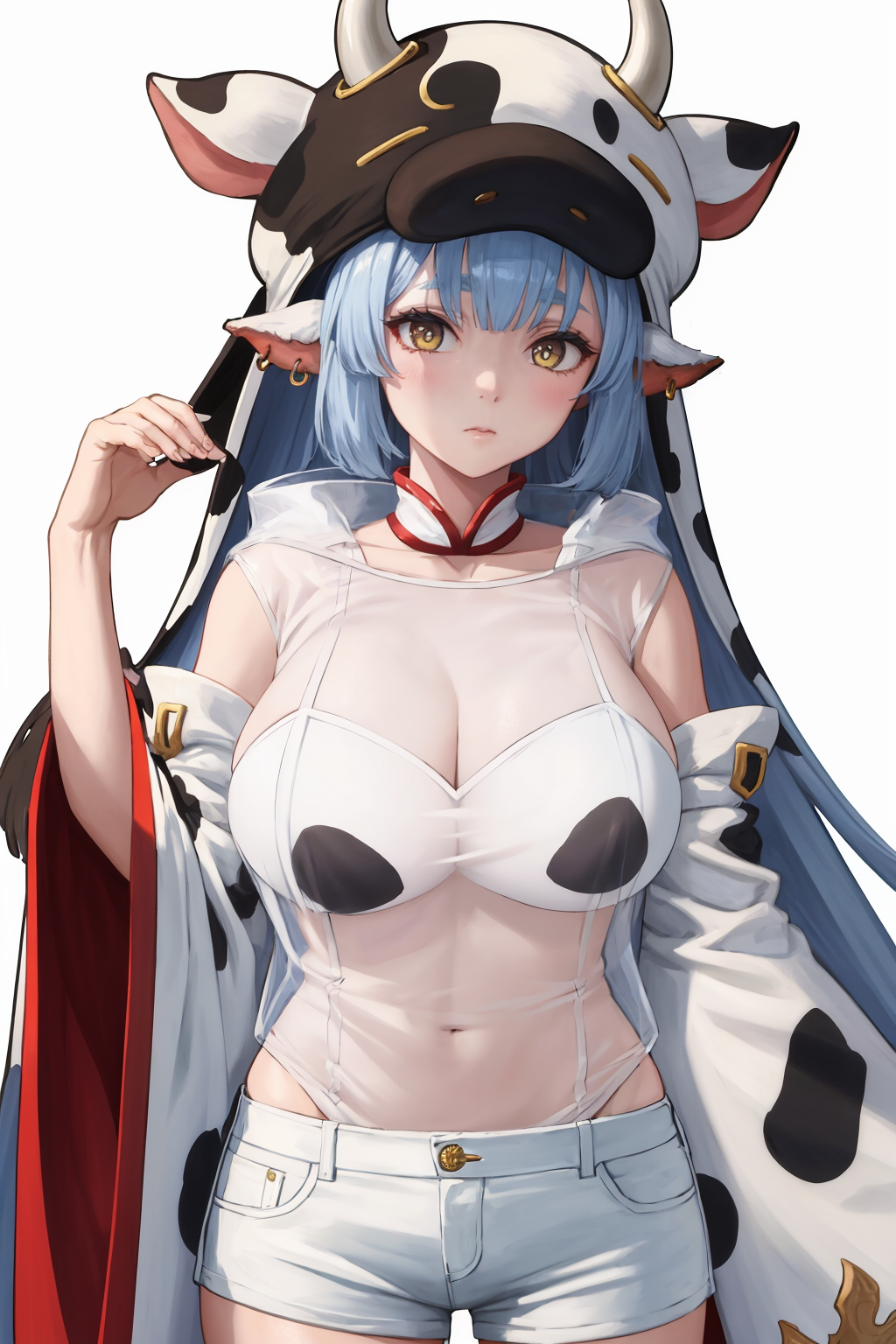 caturadef,牛皮纹,可拆卸领子,神乐绳,透视,可拆卸袖子,白色短裤,耳洞