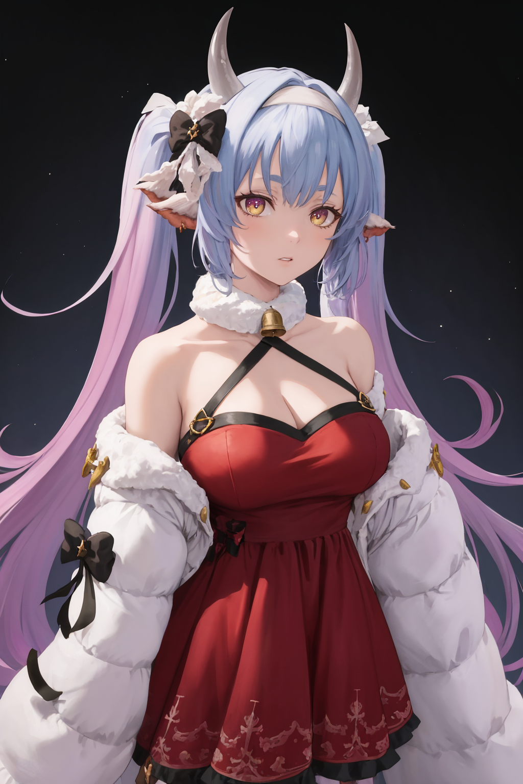 caturawinter,双马尾,蝴蝶结,发带,露胸,吊带装,颈铃,毛边装饰,露肩,红色连衣裙