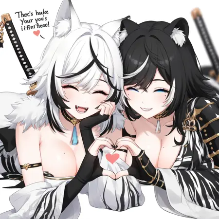 Erika Byakko, White Tiger Girl, White Tiger Tail, White Tiger Ears, White Hair, Short hair, black and yellow hair highlights, heterochromia, blue eye, yellow eye, fangs, thick thighs