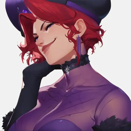 1girl, Arachne, purple eyes, red eyeshadow, red lipstick, full lips,