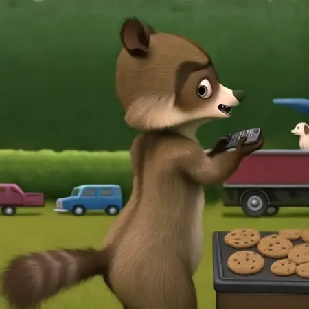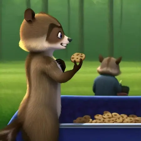 RJ, RACOON, BLACK NOSE, BLUE EYES, BROWN FUR, CREAM FUR, FURRY, MALE, 3D, CGI, SHORTSTACK,