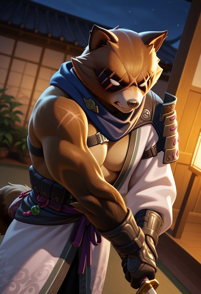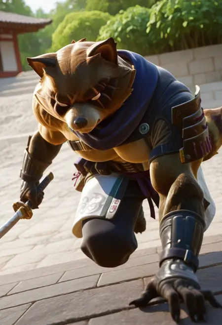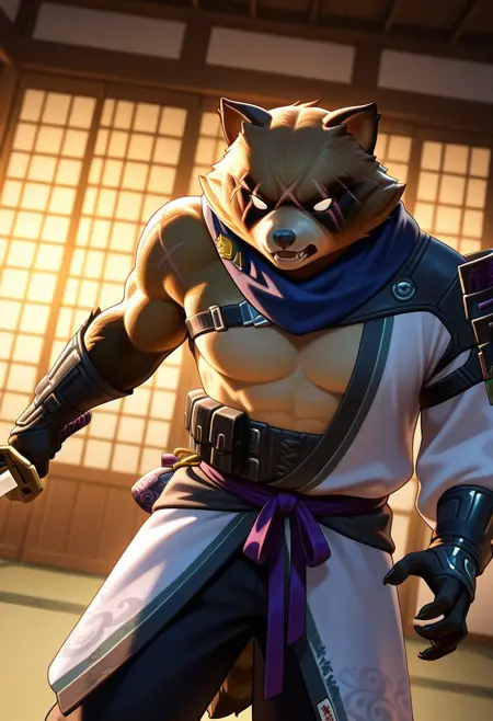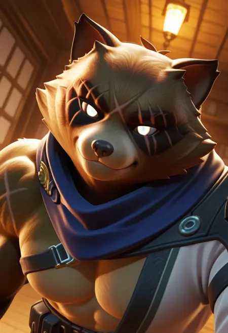 强化提示:“兽耳,肌肉发达, bara,大肌肉,男性化,无瞳孔,白色眼白,眼睛有疤痕,肩膀有疤痕”