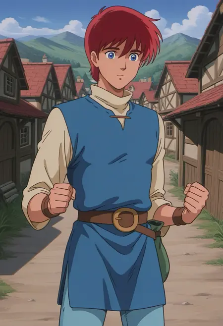 来自《Ys I OVA》的阿多尔·克里斯汀。《Ys》系列由Falcom制作。