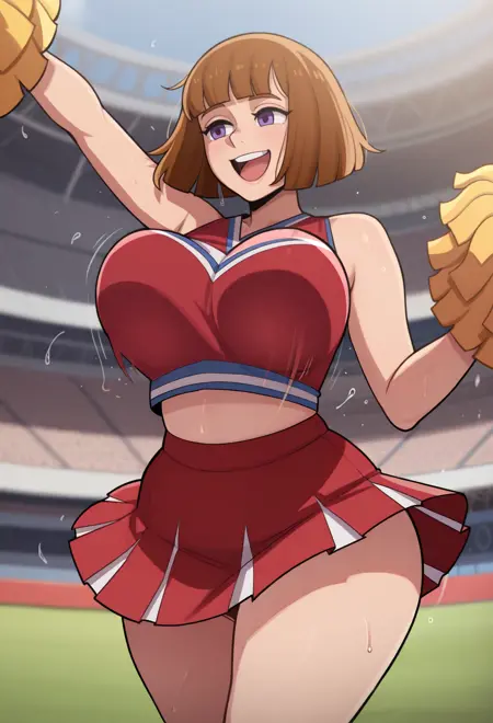 캐릭터 태그: 갈색 머리, 짧은 머리, 볼 컷, 둔한 앞머리, 보라색 눈