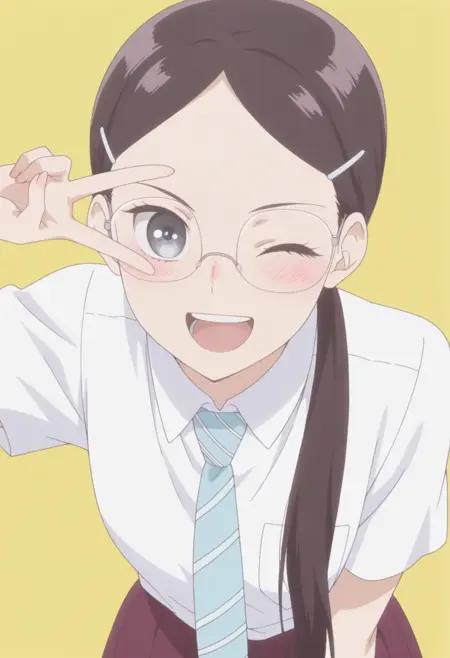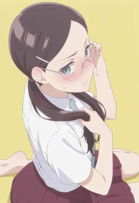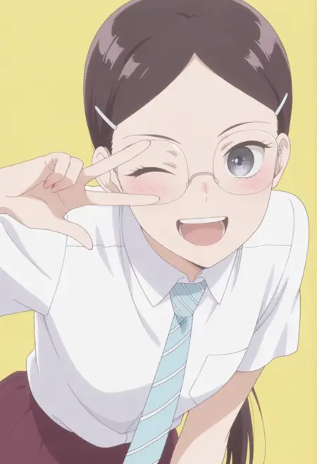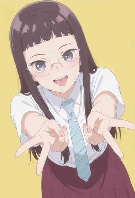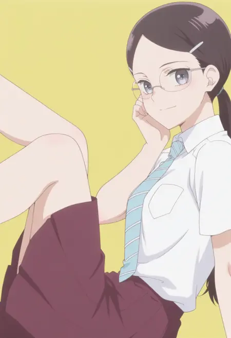glasses, school uniforme, white shirt, striped necktie, skirt,